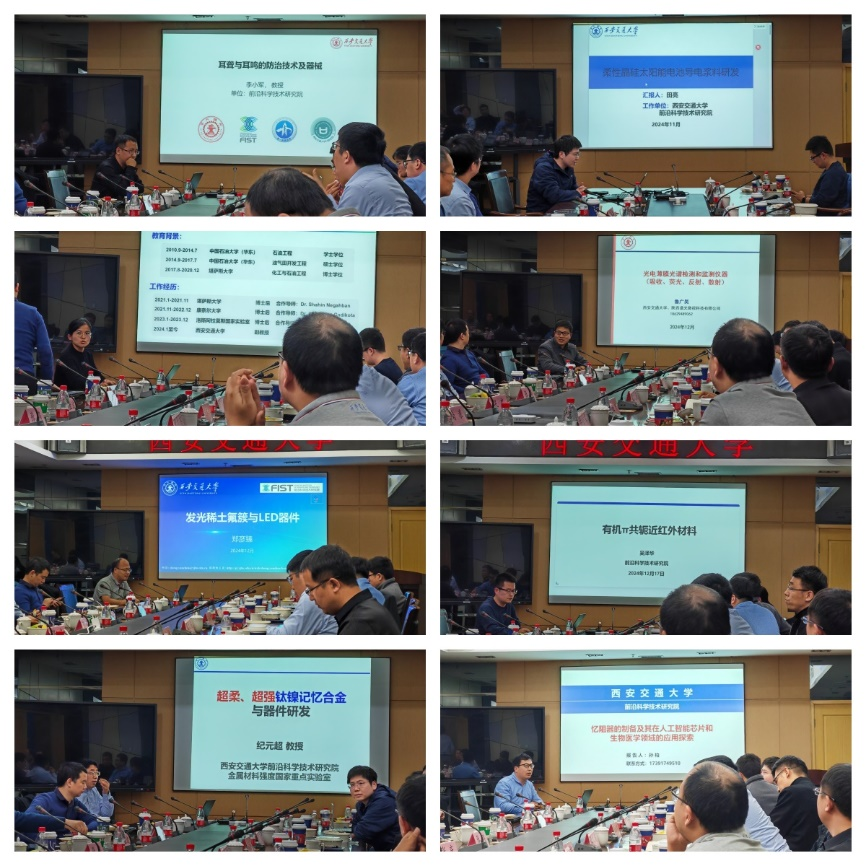 前沿院孙柏教授、纪元超教授、鲁广昊教授、田亮教授、李小军教授、郑如意研究员、吴泽华研究员、助理教授翟沅琦分别分享了所在领域的最新进展、研究成果及前沿热点,内容涵盖忆阻器、即强且柔金属材料、光电薄膜光谱检测、导电浆料、耳聋与耳鸣、水合物氢、近红外材料、发光稀土氟簇等多个学科领域。