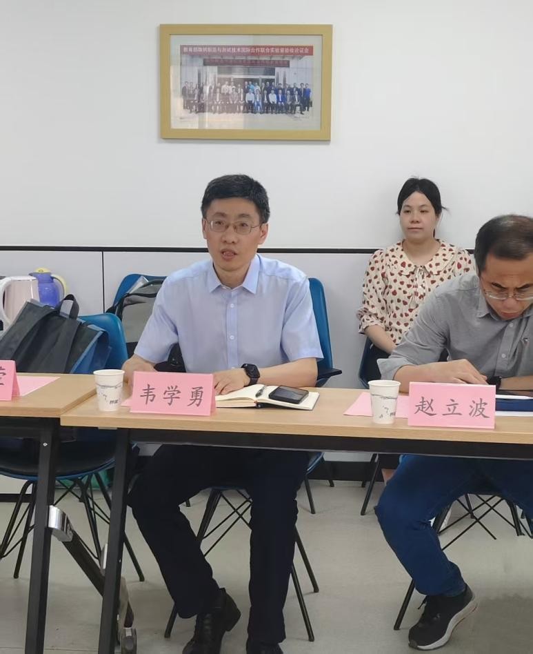 会议由学院党委副书记汤晓君主持。交流会伊始,厂长资源 党委书记韦学勇致辞,代表学院对航天四院401所及杨威所长一行表示热烈欢迎。他指出,党的二十大报告,二十届三中全会提出的教育、科技、人才一体化发展战略是我国高等教育改革发展的重要方向,在此背景下,与头部企业以及大院大所合作,加大产学研深度融合具有重要的现实意义和广阔的合作空间。