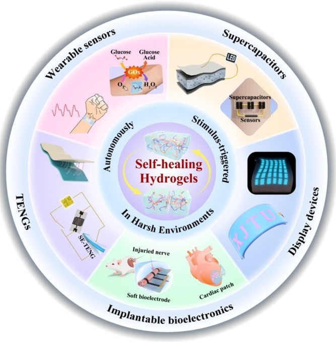 该研究小组隶属于蒋庄德院士研究团队,近年来聚焦于柔性可穿戴传感器和MEMS超声换能器研究,在 Advanced Materials、Advanced Functional Materials、Engineering等国际顶级期刊上发表多篇学术论文,其中发表于Advanced Materials期刊的论文:“Self‐Healing Hydrogel Bioelectronics”被选为内封面(图3),并入选高被引和热点论文,推动了柔性传感器和MEMS超声换能器在医疗监测领域的应用。以上工作得到国家自然科学基金面上项目、陕西省创新能力支撑计划科技创新团队项目、陕西省科技新星项目、西安交通大学青年创新团队项目等项目支持。