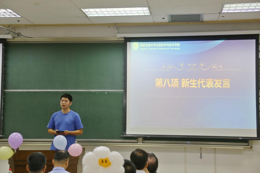 本科生新生代表测控2303班张赋凌同学表示站在新的起点,将秉承校训,专心守一、自强不息,坚定志向、勇担重任,知行合一、敢于拼搏,对国、校、家有回报之心。高年级本科生代表测控001班刘雨荷同学分享了在交大读测控专业的体验,她坚信一分耕耘一分收获,希望学弟学妹们不骄不躁,度过美好且不留遗憾的四年大学生活。