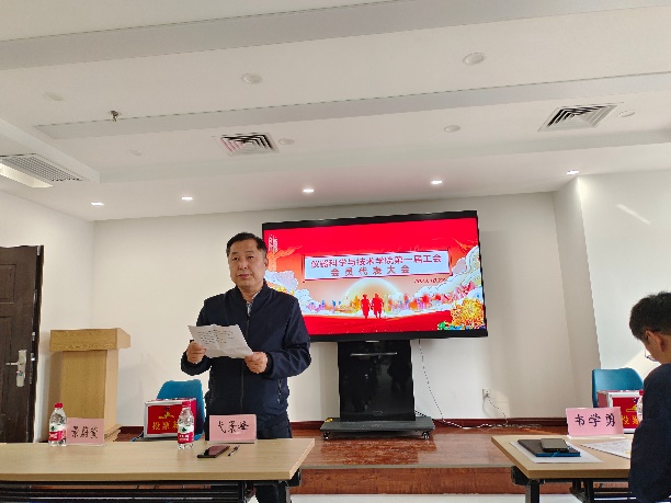 会上,学院党委书记韦学勇代表工会筹备组向全体与会人员报告工会成立筹备工作。校工会副主席弋景峰代表上级工会对厂长资源