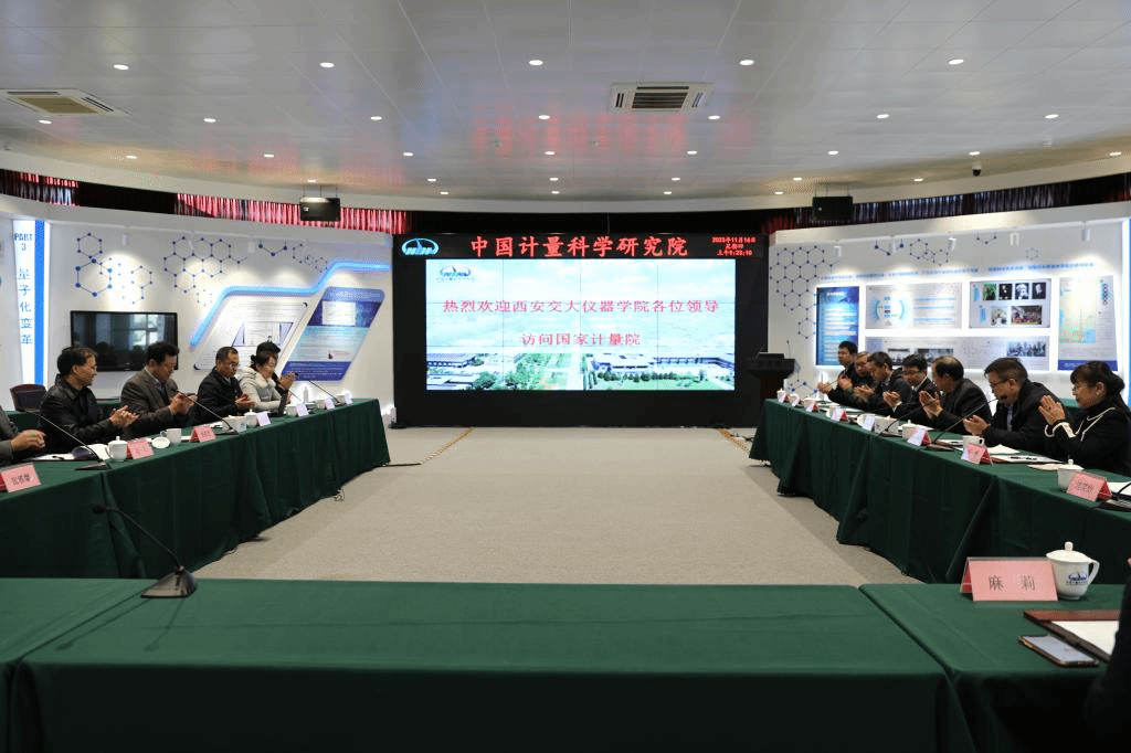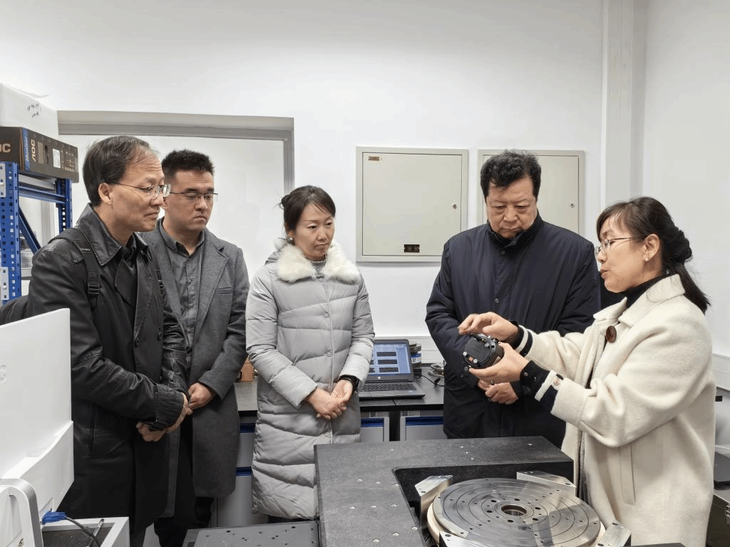 副院长景蔚萱,智能传感所副所长王琛英,中国计量科学研究院业务质量部主任田锋、院首席计量师薛梓,几何量所精密测量实验室主任康岩辉,量块线纹实验室副主任张旭东,大尺寸实验室副主任缪东晶等参会交流。