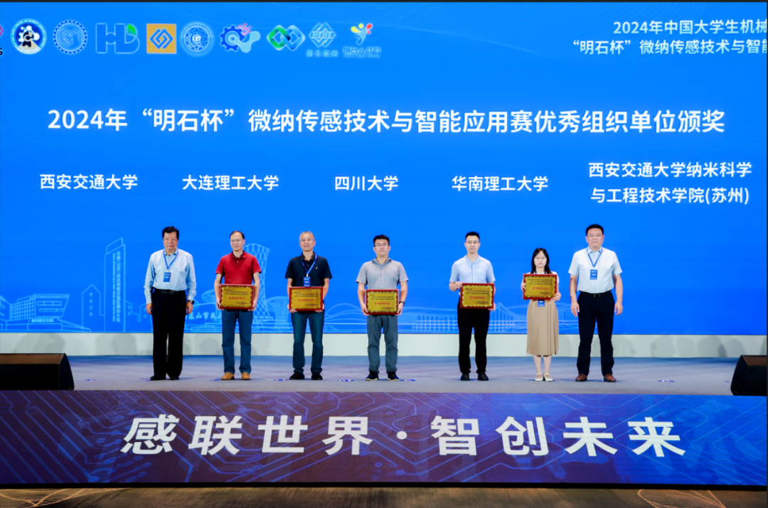执行院长、中国机械工程学会微纳制造技术分会副主任委员兼总干事赵立波教授在大赛开幕式上介绍了今年参赛队伍的相关情况以及初赛和总决赛的筹备过程。西安交通大学,大连理工大学,四川大学,华南理工大学,西安交通大学纳米科学与工程技术学院(苏州)等单位荣获2024年中国大学生机械工程创新创意大赛:“明石杯”微纳传感技术与智能应用赛优秀组织单位。