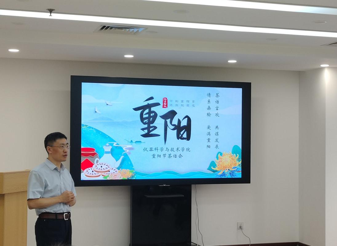 韦学勇书记作总结发言。他回忆了自己在交大的工作经历以及仪器学科的发展历程,表示目前的成绩的取得离不开老一辈的心血与汗水。韦学勇书记寄语青年教师和学生共同努力,只争朝夕;鼓励后辈多向前辈请教和学习,齐心协力推进学科和学院;并再次祝福老教授们重阳安康,万事顺意。