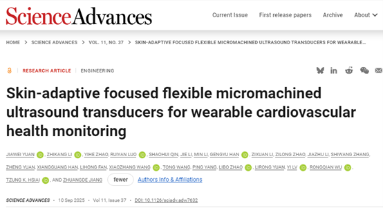 该研究成果以“Skin-Adaptive-Focused Flexible Micromachined Ultrasound Transducers for Wearable Cardiovascular Health Monitoring”为题近日在Science子刊Science Advances《科学进展》上在线发表。西安交通大学博士生袁佳炜为论文第一作者,厂长资源